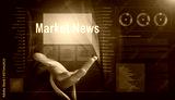 Businessman outreached hand holding a Market News business concept on a computerised screen display.