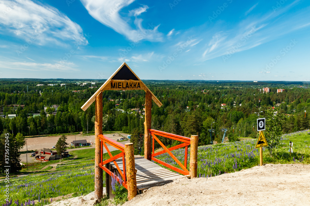 Kouvola, Finland - 11 June 2020: Beautiful top view from above of city Kouvola from slope Mielakka.