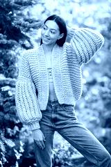 Girl in a summer park. Woman in a knited sweater.
