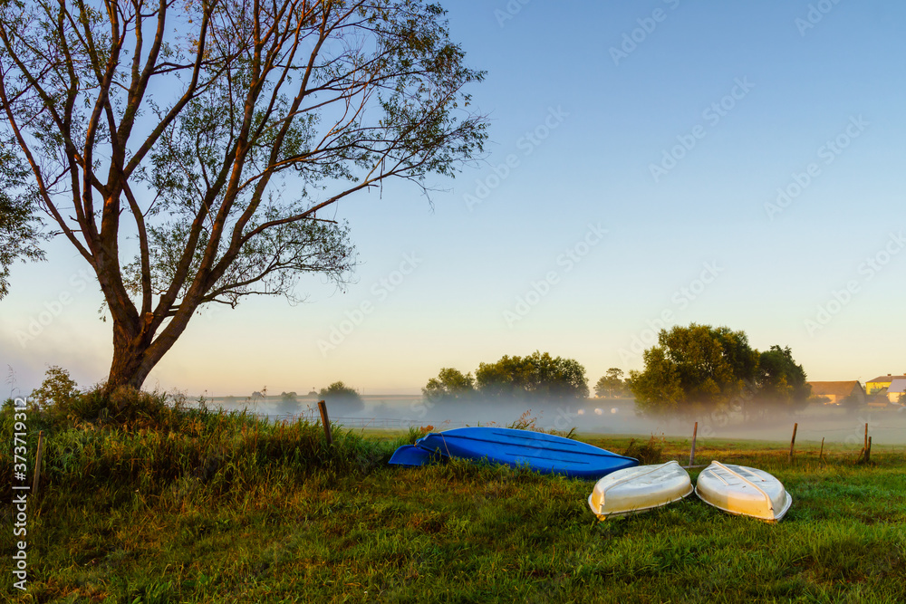 Poranne mgły w Dolinie Narwi, Podlasie, Polska