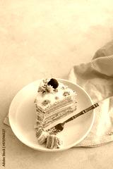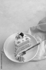 Tradional Russian cake Medovik, honey layered cake with hazelnuts and berries