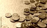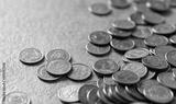 Polish one grosz coins (one hundredth of a zloty), selective focus.