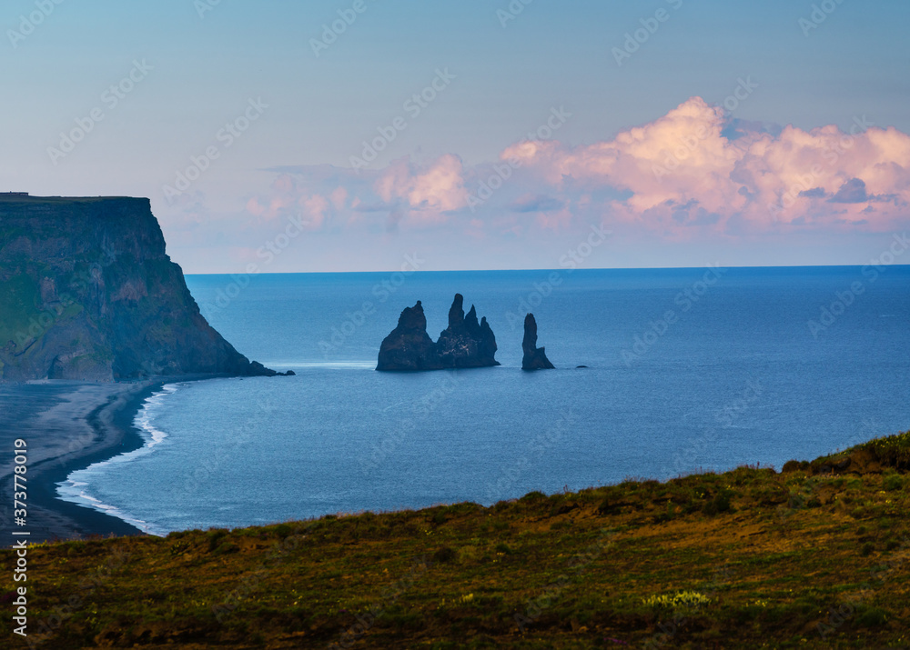 Troll Toes on Black beach Reynisfjara near the village of Vik, Iceland