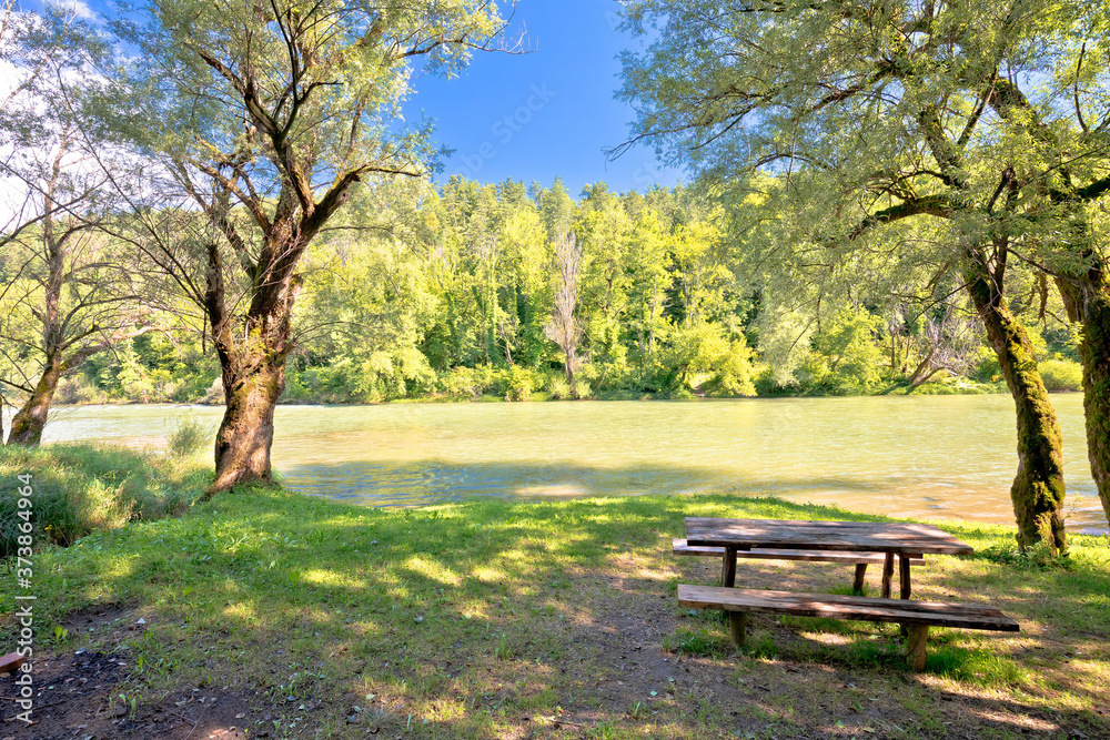 Kupa river resting place and green landscape in Gorski Kotar region of Croatia