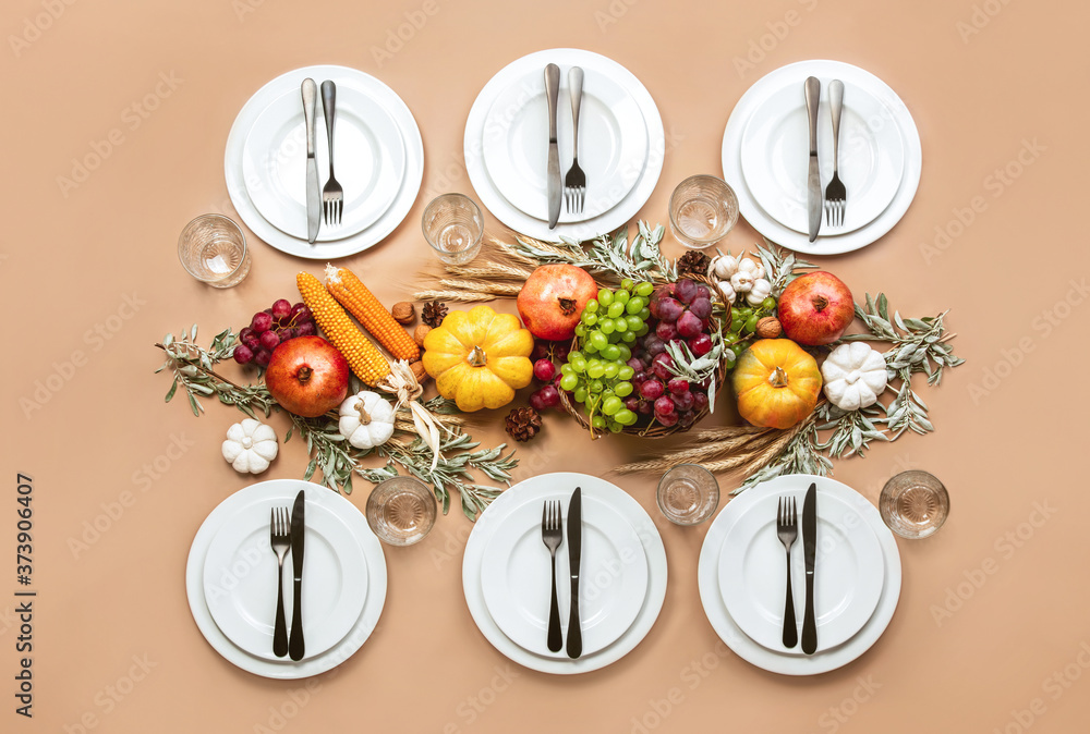 Thanksgiving table setting, top down view