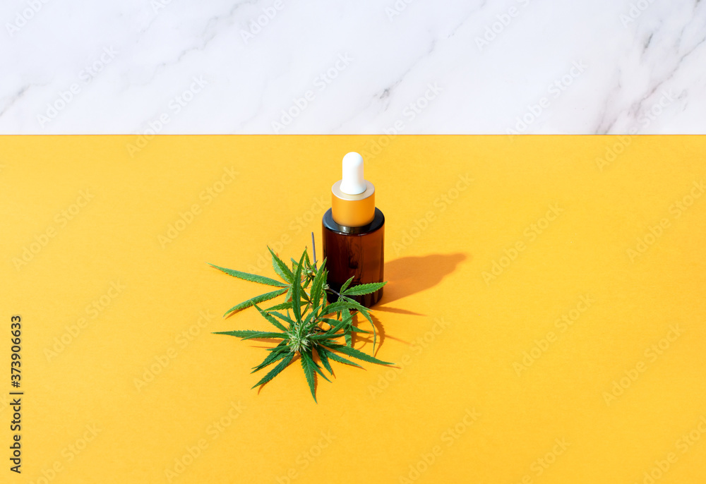 CBD oil in a bottle, medical cannabis healthy product concept