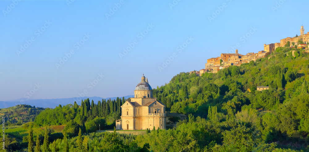 Beautiful Tuscany panorama, View of Montepulciano and Chiesa di San Biagio, San Biagio.