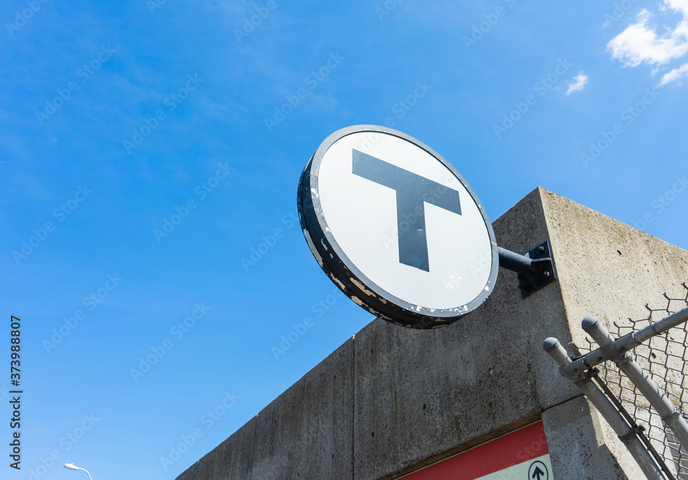 Boston MBTA sign for the Red Line T stop at UMASS Boston.