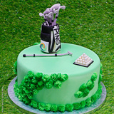 Designed birthday cake on a green grass background, Golf theme