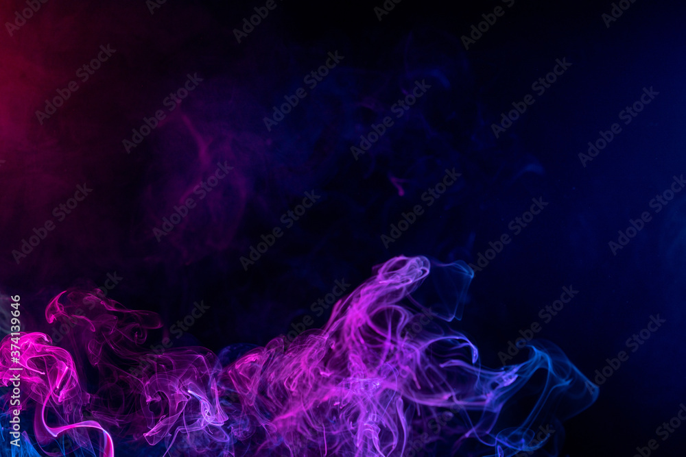 Conceptual image of multi-colored smoke isolated on dark black background, Halloween design element.