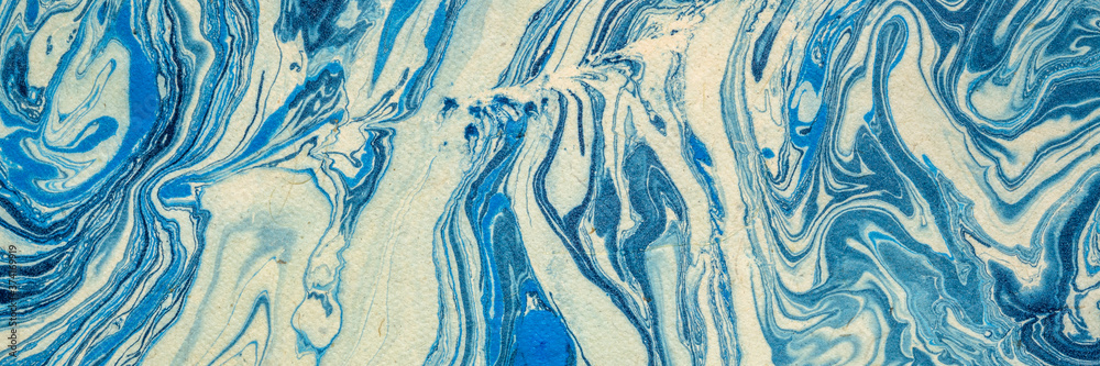 background of blue marbled Nepalese lokta paper Inspired from the grain of texture in granite stone, panoramic web banner