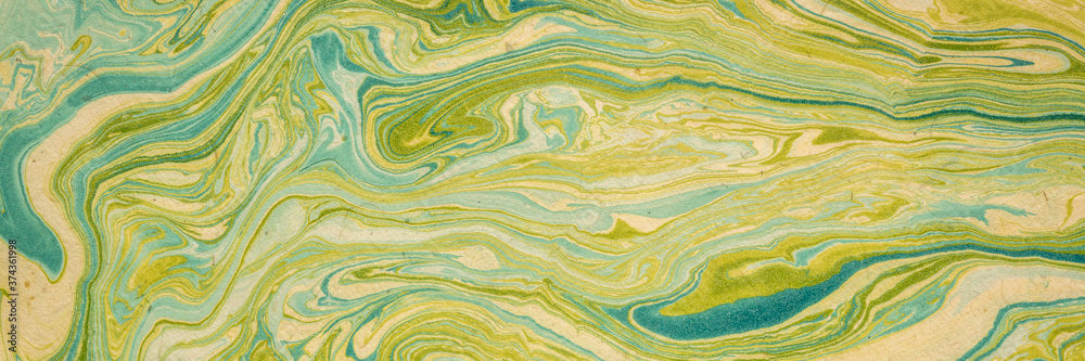background of gold, green and blue Nepalese lokta paper Inspired from the grain of texture in granite stone, web banner