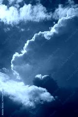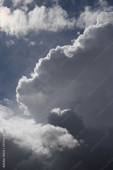 Deep blue summer sky with epic white cumulus clouds. Immense cumulus rising to become cumulonimbus.