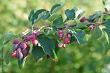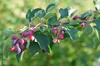 Clusters of spices red currant and Irga in the morning sun close up