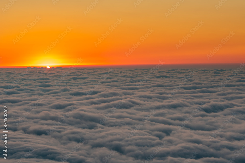 Beautiful view of sunset from Gomismta mountiain. Up in the air