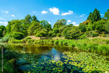 Scenic view of a pond in the Copenhagen Botanical Garden, part of the University of Copenhagen Faculty of Science.