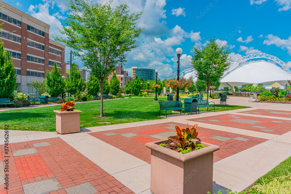 The Dayton Ohio downtown also has a beautiful park next to the river.