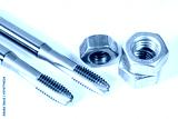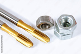 Set of tap for threading in metal. Bolts and nuts isolated on white background. Tool for metal processing.