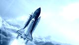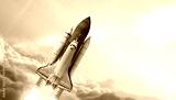 Space shuttle in the clouds. Launch of spaceship from Earth planet. Space wallpaper. Elements of this image furnished by NASA