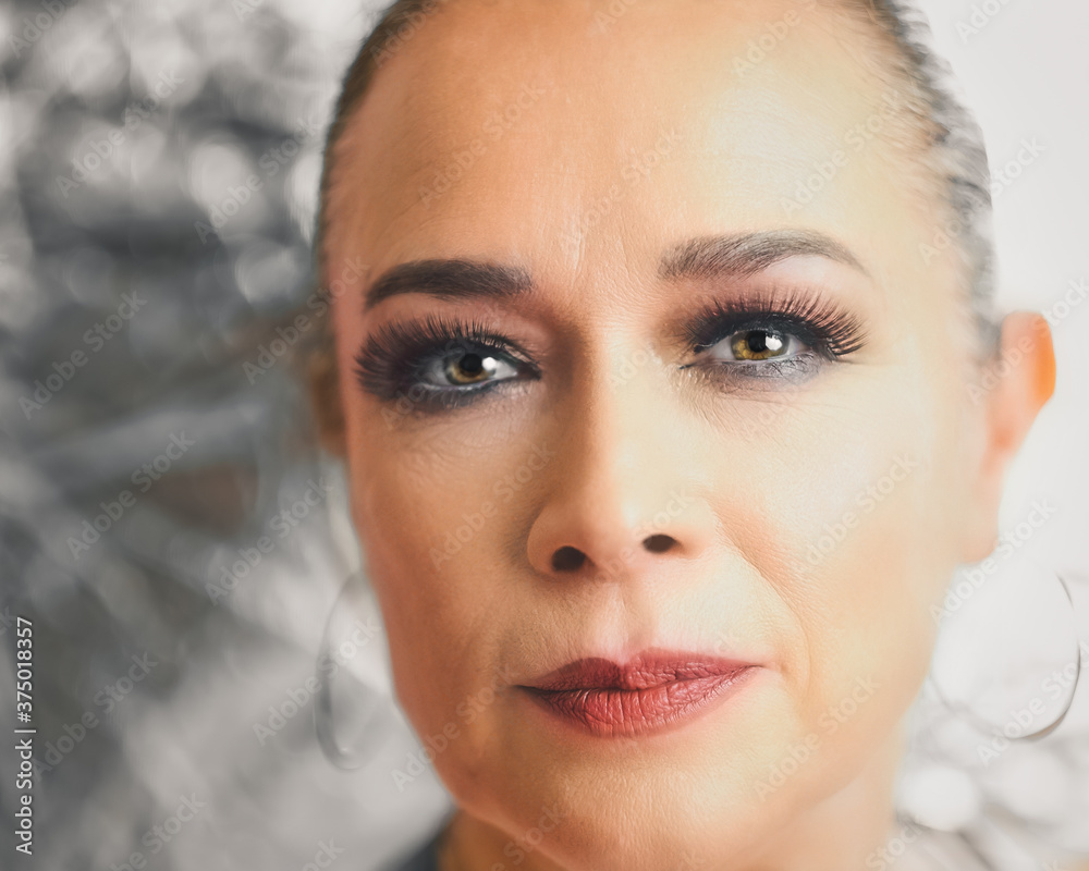 Middle age Latin woman portrait, showing her eyes.