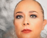 Middle age Latin woman portrait, showing her eyes.