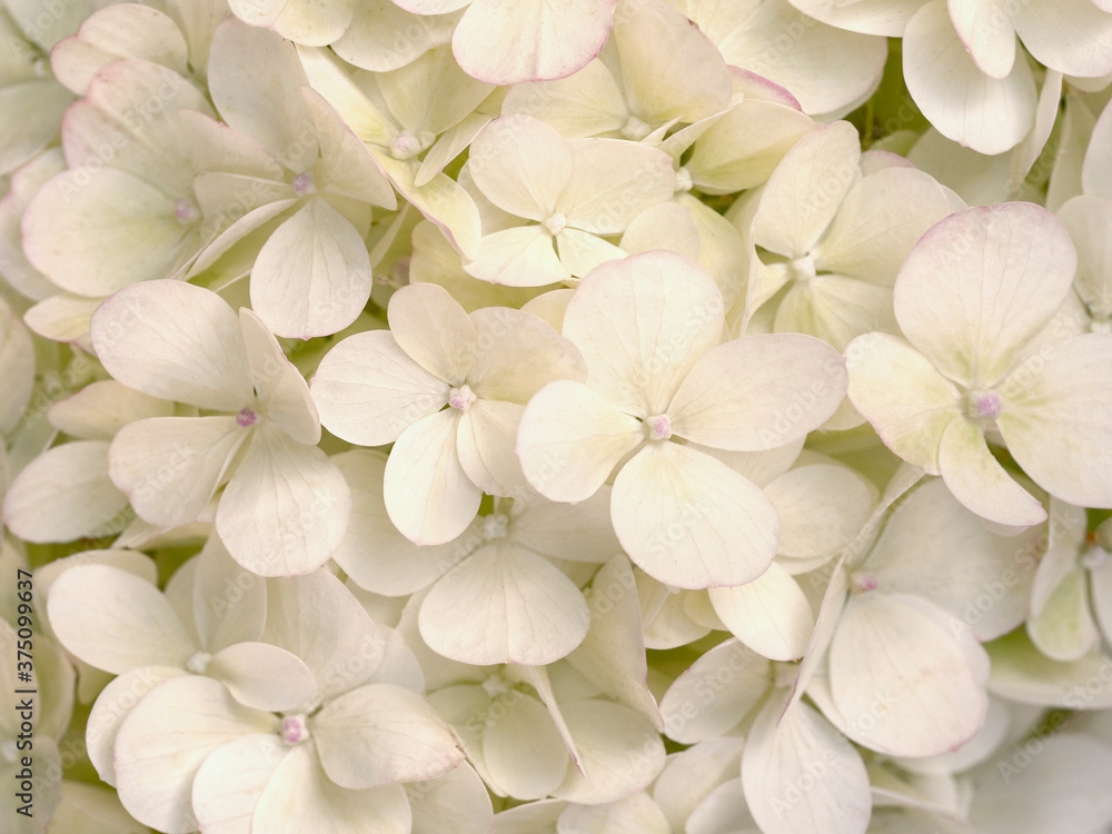 Beautiful beige hortensia close up. Artistic natural background