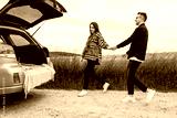 Young Beautiful Couple Having Fun Near the Car, Travel and Roadtrip Concept