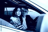 Young Beautiful Couple Sitting in the Car and Enjoying the Roadtrip
