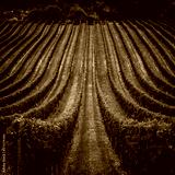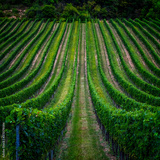 beautiful green vineyards rows at sunset