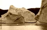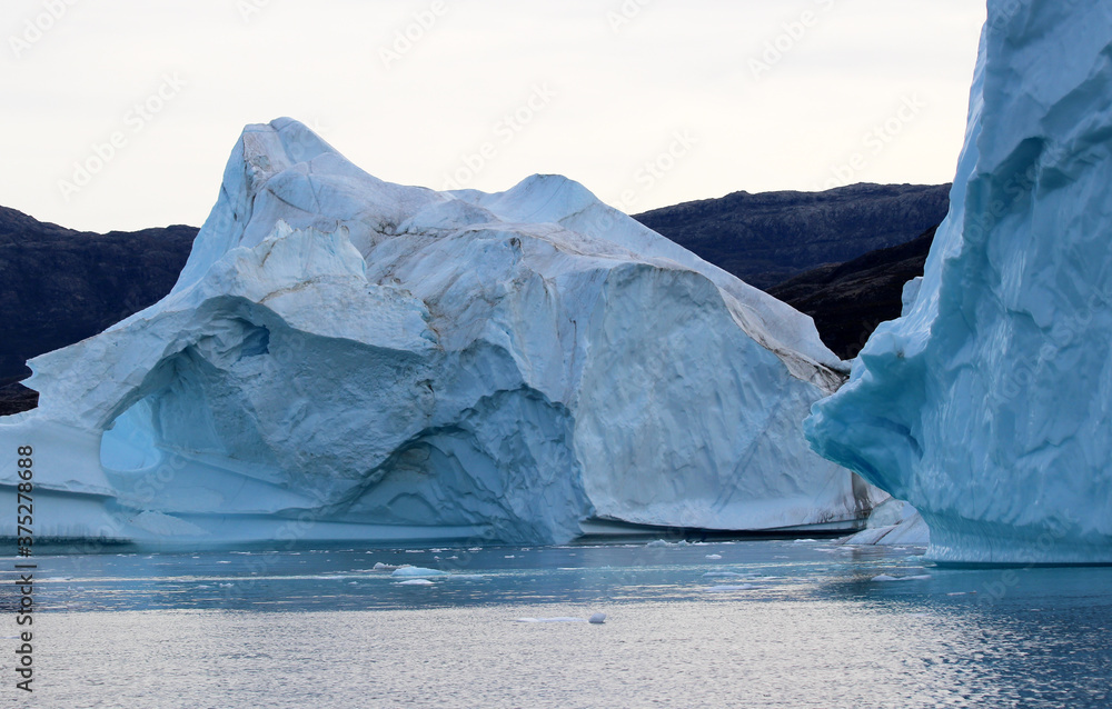 Icebergs in the background, landscape Greenland, majestic Nuuk Fjord.