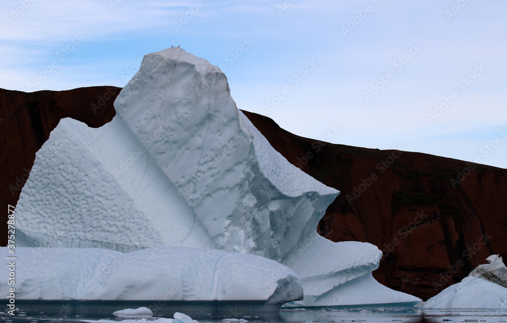 Icebergs in the background, landscape Geenland, majestic Nuuk Fjord.