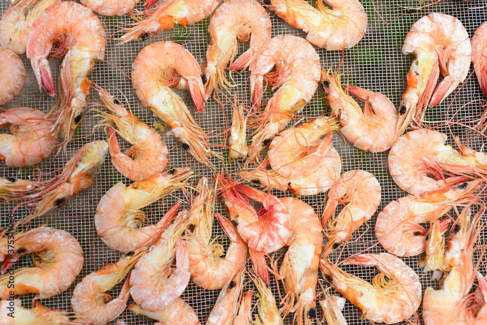 Dried shrimp close-up photo That is produced by themselves as a food ingredient