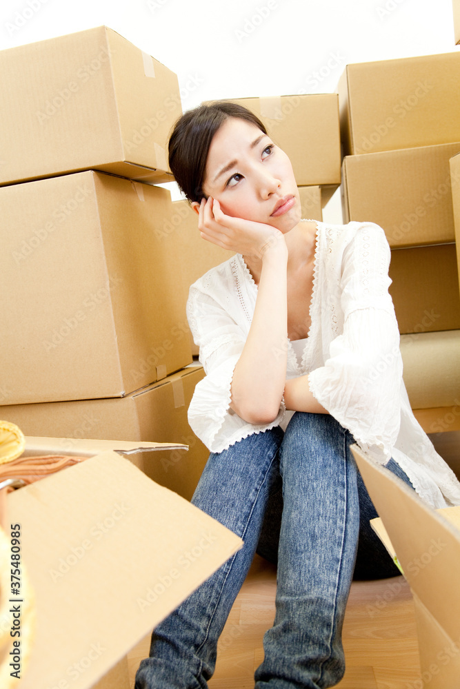 引越し作業に悩む女性