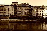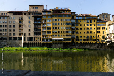 Closeup shot of colorful apartment buildings on the river bank in Florence Italy