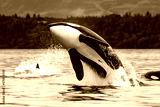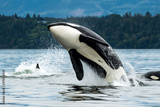 Bigg's orca whale jumping out of the sea in Vancouver Island, Canada