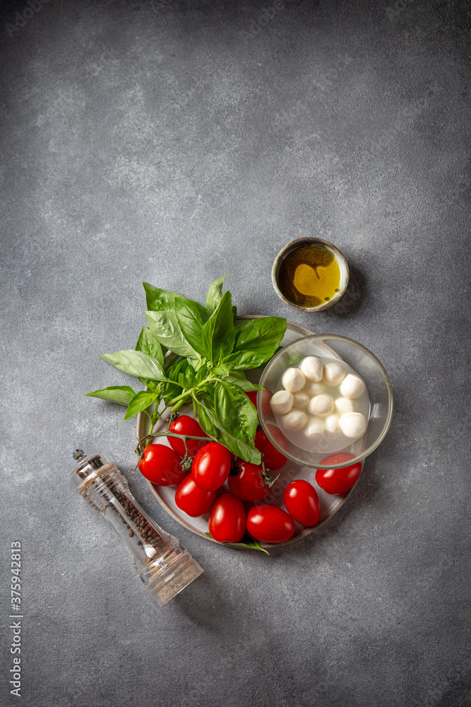 Caprese salad ingredients - tomatoes, cheese and basil.