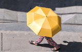 The walker on the street of the city is hiding under a parasol, Ho Chi Minh city. A woman wearing a yellow umbrella on center Saigon city.