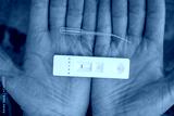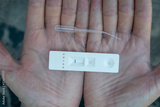 Hands with latex gloves showing Covid 19 test