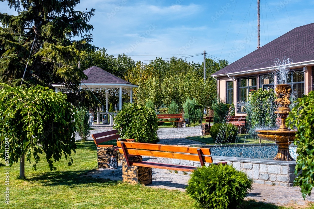 Ukraine. Odessa. 08/04/2020. A fountain in the courtyard of the restaurant. New buildings