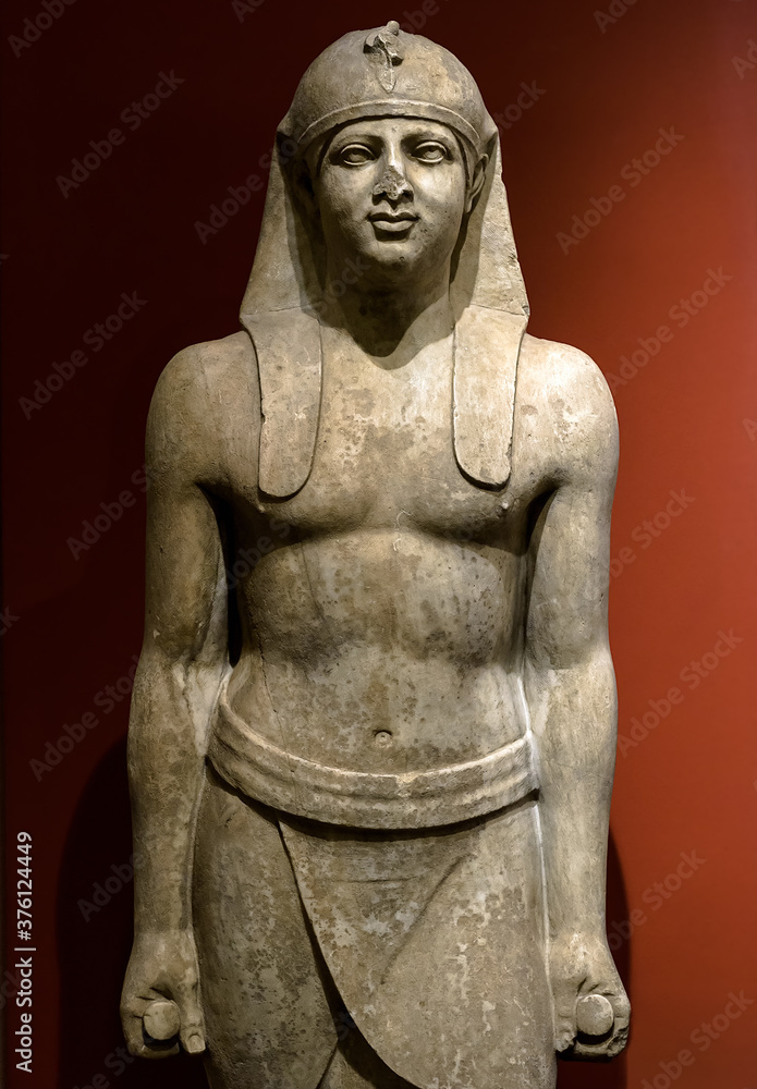 Egyptian statue of pharaoh or high official man, historical stone sculpture. Traditional art of Egypt,