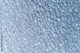 Aerial view of a frozen blue lake. Top down view. Drone image from above. Water surface covered with ice texture.