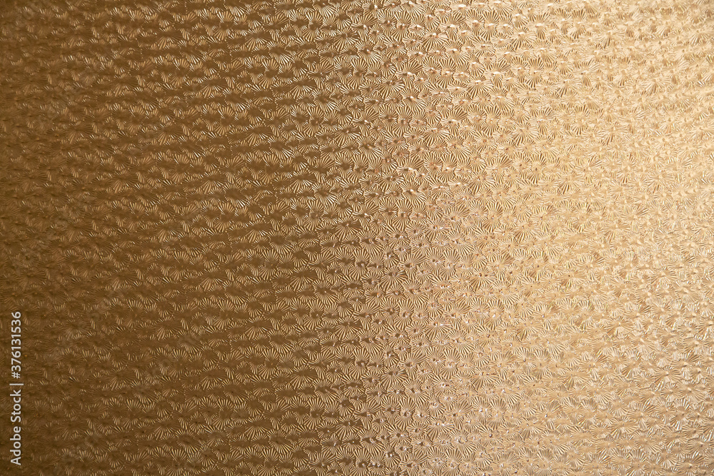Sign on textured glass reading "MEN" in gradiated warm light from left to right