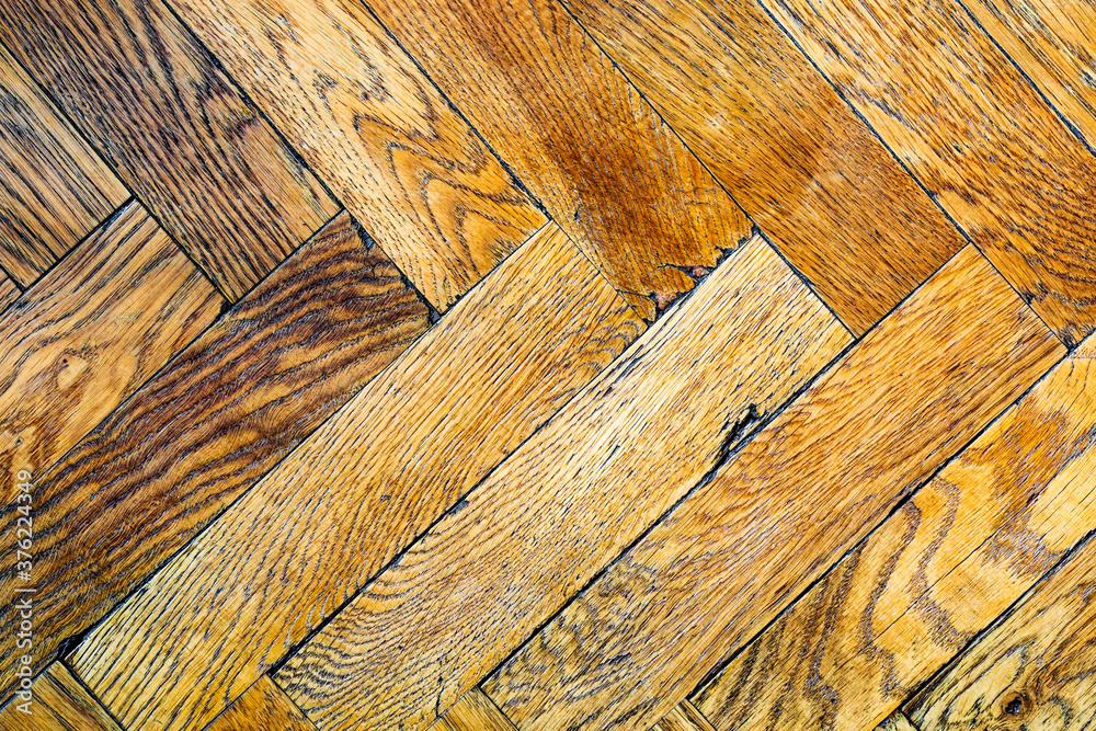 Antique parquet floor. Natural oak tree texture. Wooden background with organic pattern vintage planks. Macro photography, up view.