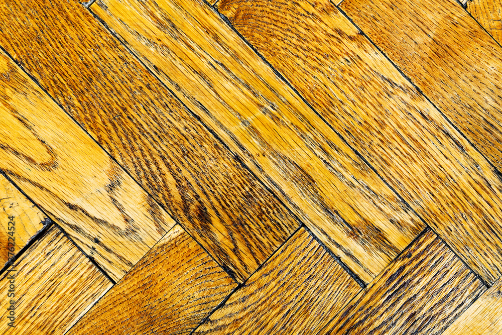 Antique parquet floor. Natural oak tree texture. Wooden background with organic pattern vintage planks. Macro photography, up view.