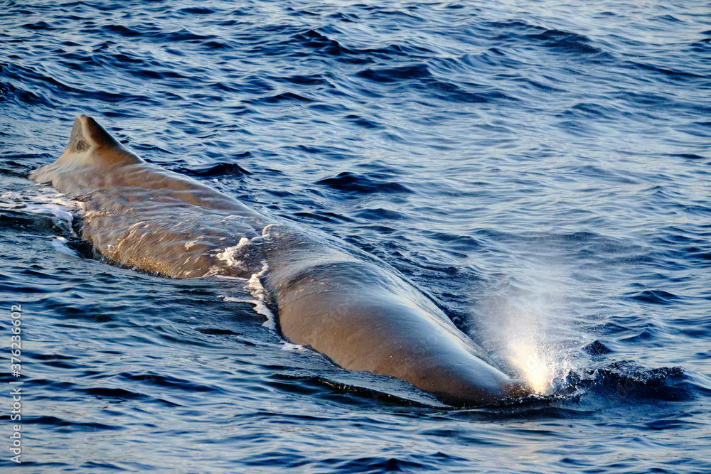 Very friendly sperm whale in Ligurian sea, in front of Genoa, Italy.