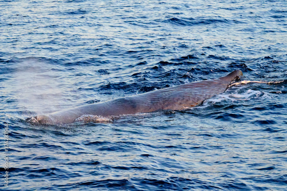 Very friendly sperm whale in Ligurian sea, in front of Genoa, Italy.