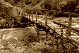 Old wooden bridge over a river Argun in Upper Khevsureti, Georgia