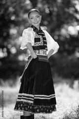 Portrait de jeune femme portant des vêtements traditionnels slovaques
