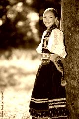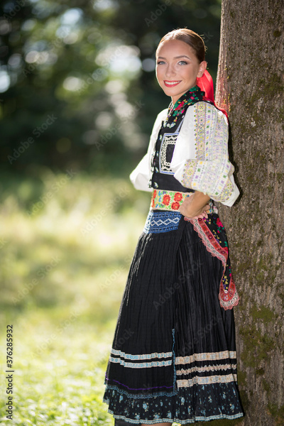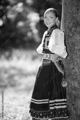 Portrait de jeune femme portant des vêtements traditionnels slovaques