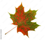 Bright, autumn maple leaf isolated on white background.